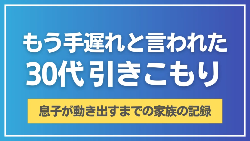 【引きこもり30代】手遅れと言われた息子が動き出すまでの家族の記録